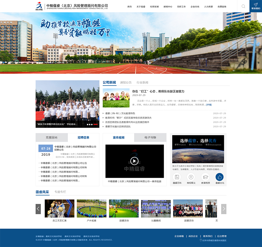 Project Description 中精蕴睿(北京)风险管理顾问有限公司2013年,现有教职工及各科目教育专家80多人,致力于为各中小培训学校(机构) 提供教育相关政策咨询与指引、法律服务、人才引进与培养、师资队伍建设与培训、教学教研与学科创新、市场营销企划、文化 理念塑造与品牌输出的专业化教育管理全方位的综合服务。 Official website address 潍坊http://in-re.com/ I want to share